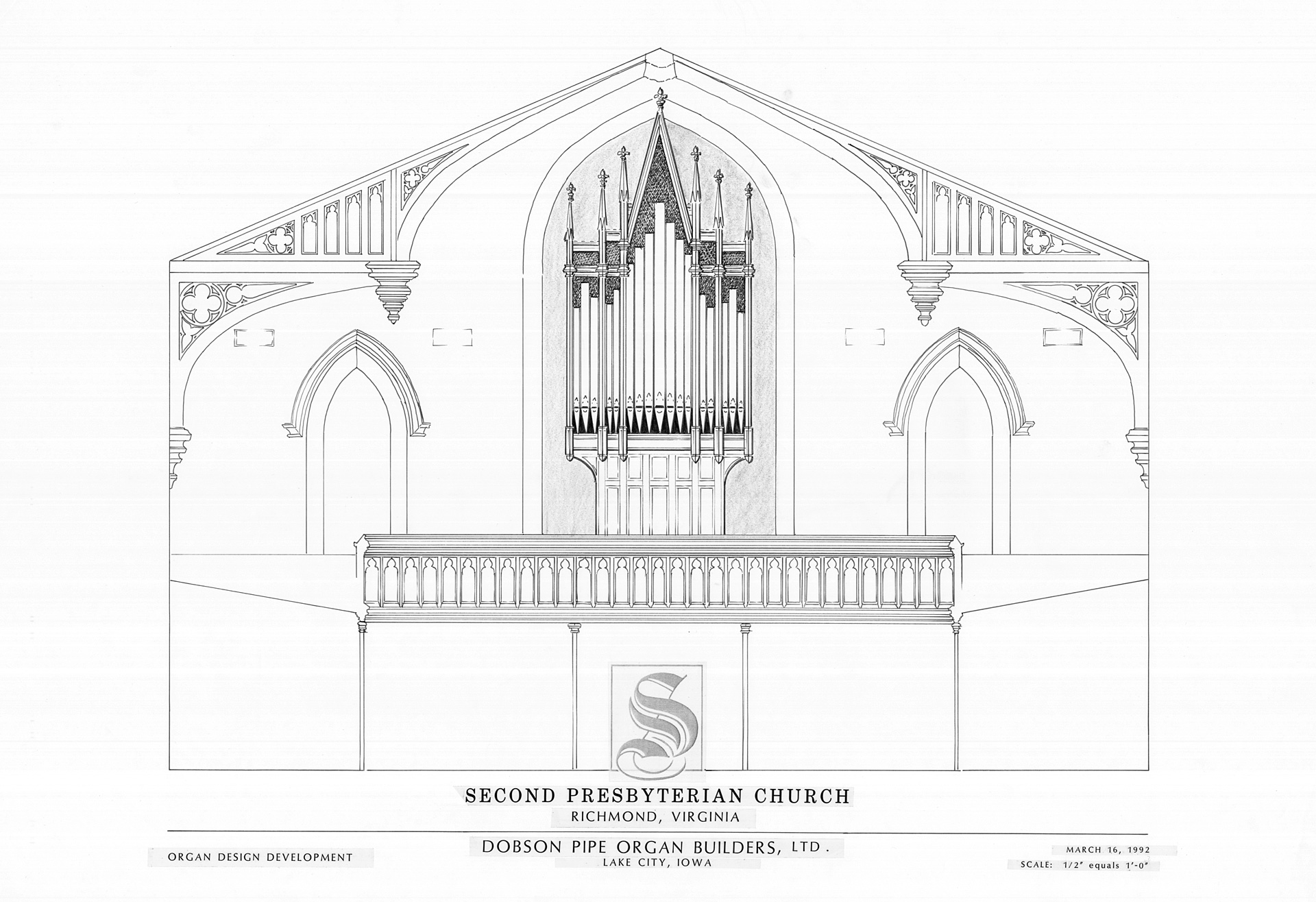 Organ Design Development Second Presbyterian Church, Richmond, Virginia March 16, 1992 Ink and pencil on vellum