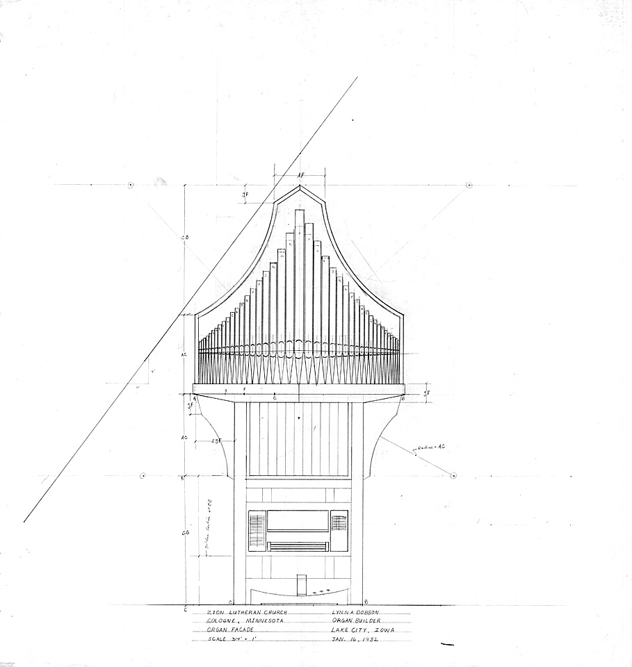 Organ Facade Zion Lutheran Church, Cologne, Minnesota Jan. 16, 1982 Ink on vellum