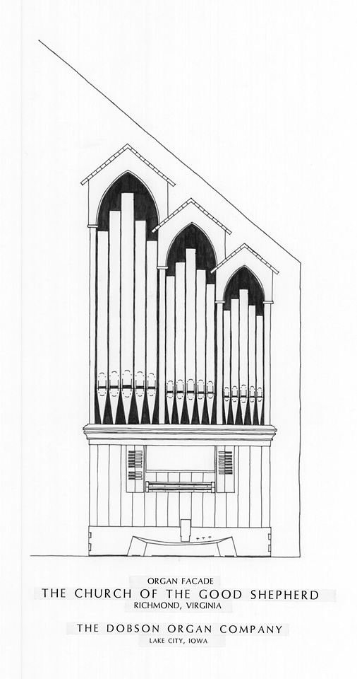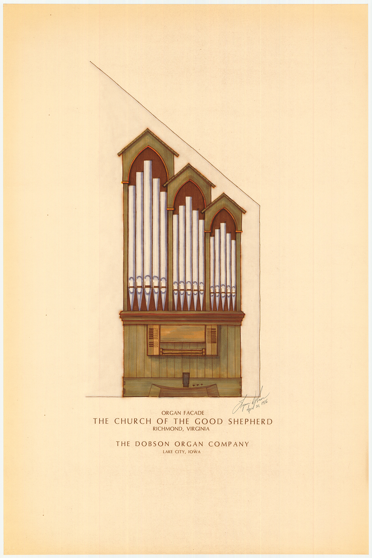 Organ Facade The Church of the Good Shepherd, Richmond, Virginia April 30, 1986 Brownline diazo print with colored marker