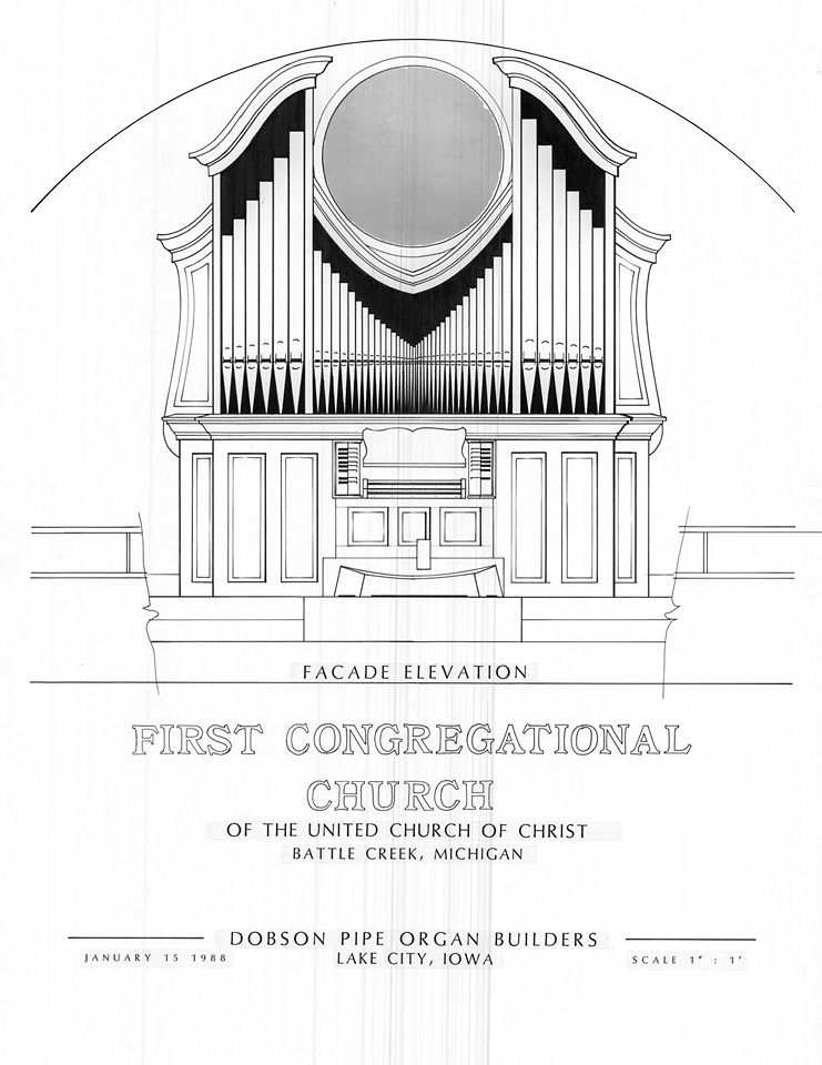 Facade Elevation First Congregational Church, Battle Creek, Michigan January 15, 1988 Ink on vellum