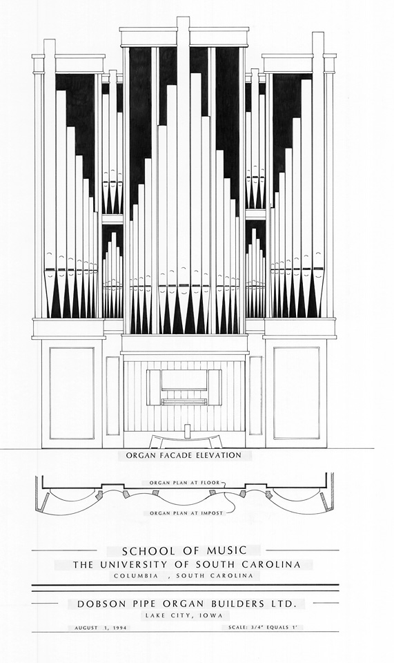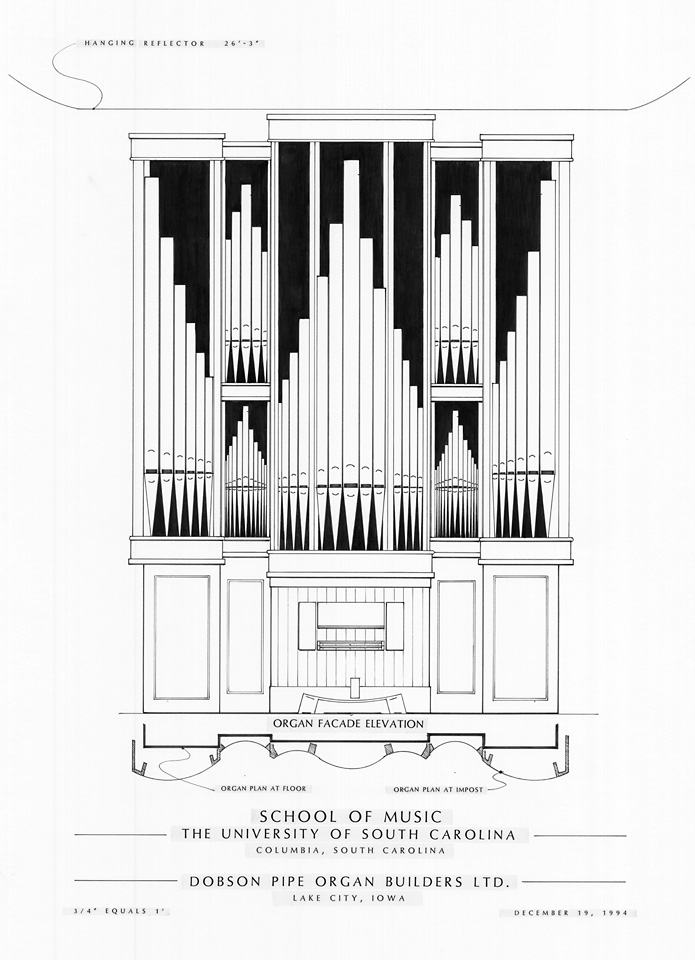 Organ Facade Elevation School of Music, The University of South Carolina, Columbia, South Carolina December 19, 1994 Ink on vellum