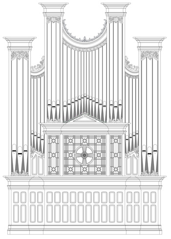 The impost is the “belt” that separates the lower case from the upper. The largest façade pipes stand at this level. For ease of construction, the impost is built upside down.
