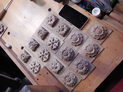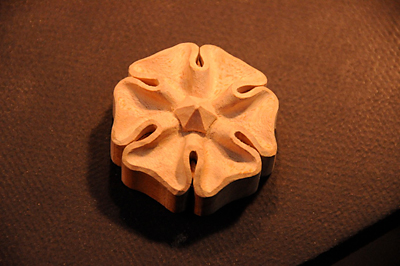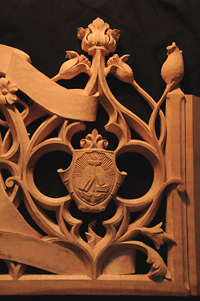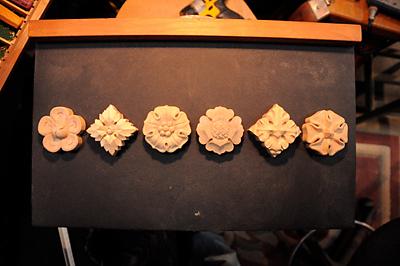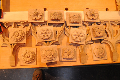 Each of the points of the cresting bears a rosette that is carved separately, then glued on.