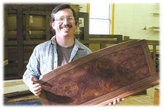 Bob Savage Studies show that the average working American will have three to five careers and ten to twelve jobs during his or her lifetime. Bob Savage’s roundabout journey away from Lake City and back again proves that there’s at least one person in our shop who’s an “average working American.” Surrounded here by so many “organ types,” with their bizarre music interests, eccentric hobbies and from-the-cradle certainty about choice of career, Bob stands out by being, well, normal. Bob is a Lake City native, born here in 1954, the son of Pete and Mary Ann Savage. His father owned a small farm and was manager of the local farmers’ cooperative, where his mother also worked as a secretary. His childhood resembled a ’60s family TV show: growing up in a small town with three siblings, building model rockets, playing guitar in a band. Bob attended Lake City schools, and after graduation from high school, enrolled at Iowa State University in Ames to study architecture. Though an architectural degree would have led to a respectable job that would support his wife and future family, Bob’s heart wasn’t in it, and besides, he was overwhelmed by the calculus. When Bob was a young adult, he was not a regular churchgoer, but while at Iowa State he became involved with the Navigators, a Christian collegiate group. After taking a year off to assess his priorities, he enrolled at Lincoln Christian College and Seminary in Lincoln, Illinois. Upon graduation, he served as Director of Christian Education for Minier Christian Church in Minier, Illinois. Although he very much enjoyed working with children and youth, the demands of the position were a source of stress for his young family. After four years and much soul searching, he decided to leave his position in Minier and move back to his hometown in 1985. As it happened, his father’s job situation also changed at this time, and the two decided to open a furniture refinishing and restoration business in Lake City. To make ends meet while the infant business grew, Bob took a position as a custodian in the local school district. When this ended in 1989, Bob applied at Dobson, whose shop was a familiar sight to him on the City Square but about which he knew very little. To his surprise, he was hired that same day. At the time, he didn’t imagine that working here would be anything but a paycheck to tide him over until his “real” business was self-supporting. Like a morning glory vine, organ building has a way of entwining unwitting subjects. Though the Dobson job was, as he saw it, just a fill-in, Bob discovered that he enjoyed the work. But his satisfaction in this work was running up against the growing success of his “real” business, which was drawing customers from up to one hundred miles away. Soon he found he was working two full-time jobs, an untenable stress on him and his family. And so, as in Ames and Minier, Bob found himself at a crossroads. In the end, the challenges of building organs won out over the daily grind of running his own business. Bob especially enjoys the variety of the work he does. From casework to windchests, stop action to swell shades, there is almost no part of the organ that he has not built. A primary responsibility is the construction and leathering of the bellows, which store wind and regulate its pressure. Another important job, especially in larger projects, is the wiring needed for electric stop actions and combination actions. The stage console for the Kimmel Center, shown below, exemplifies the sort of challenge Bob enjoys. All electronic components, some of good size, had to be fitted into the fantastically curving cabinet of the console, and yet be readily accessible for service. Bob devised an elegantly simple arrangement where the major parts slide out like drawers. With his parents and a couple of siblings nearby, Bob has a close relationship with his extended family. He has two sons from his first marriage and gained a second family with his marriage to Patty Riesenberg in 1999. Bob’s well-preserved good looks, favorably compared to Barney Rubble, don’t betray the fact that he’s a grandpa; his eldest son Jason and his wife Lisette welcomed their first child, Eva, in February. There are aspects of our art that, when done well, readily attract favorable attention. An organ’s beautiful woodwork and impressive sound are easily appreciated. However, the same sort of glory doesn’t attach to neat wiring, say, or careful leather skiving, things that are usually hidden from potential admirers deep within the bowels of an organ. A true craftsman relishes the challenges of a project, and takes his chief satisfaction from a job done to the best of his abilities, not from the praise he will receive. Bob is one of those people, a rare soul who enjoys a good challenge, and for whom external validation isn’t necessary. Hmm… perhaps he’s not so average after all. drawn from The Organbuilder, Fall 2006